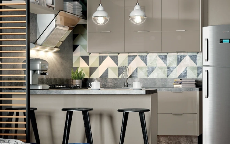 - Ordem dos equipamentos: geladeira – pia – fogão. A disposição desses equipamentos lado a lado e nessa ordem permite um fluxo de trabalho racional e funcional. A pia entre a geladeira e o fogão separa os eletrodomésticos e ajuda a controlar a diferença térmica entre o frio da geladeira e o calor do fogão
