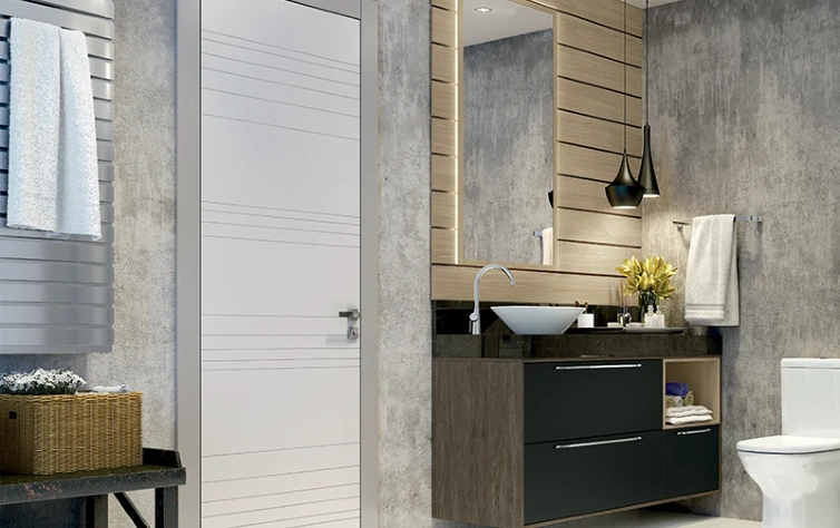 Além disso, os espelhos também podem ser grandes aliados para “ampliar” o espaço no banheiro, por isso não deixe de optar pelos modelos com superfícies grandes e lisas. Já em relação ao box, a melhor opção para economizar espaço são as portas de correr com vidro transparente, que não precisam ser abertas e também ampliam o alcance visual de toda a área do banheiro.